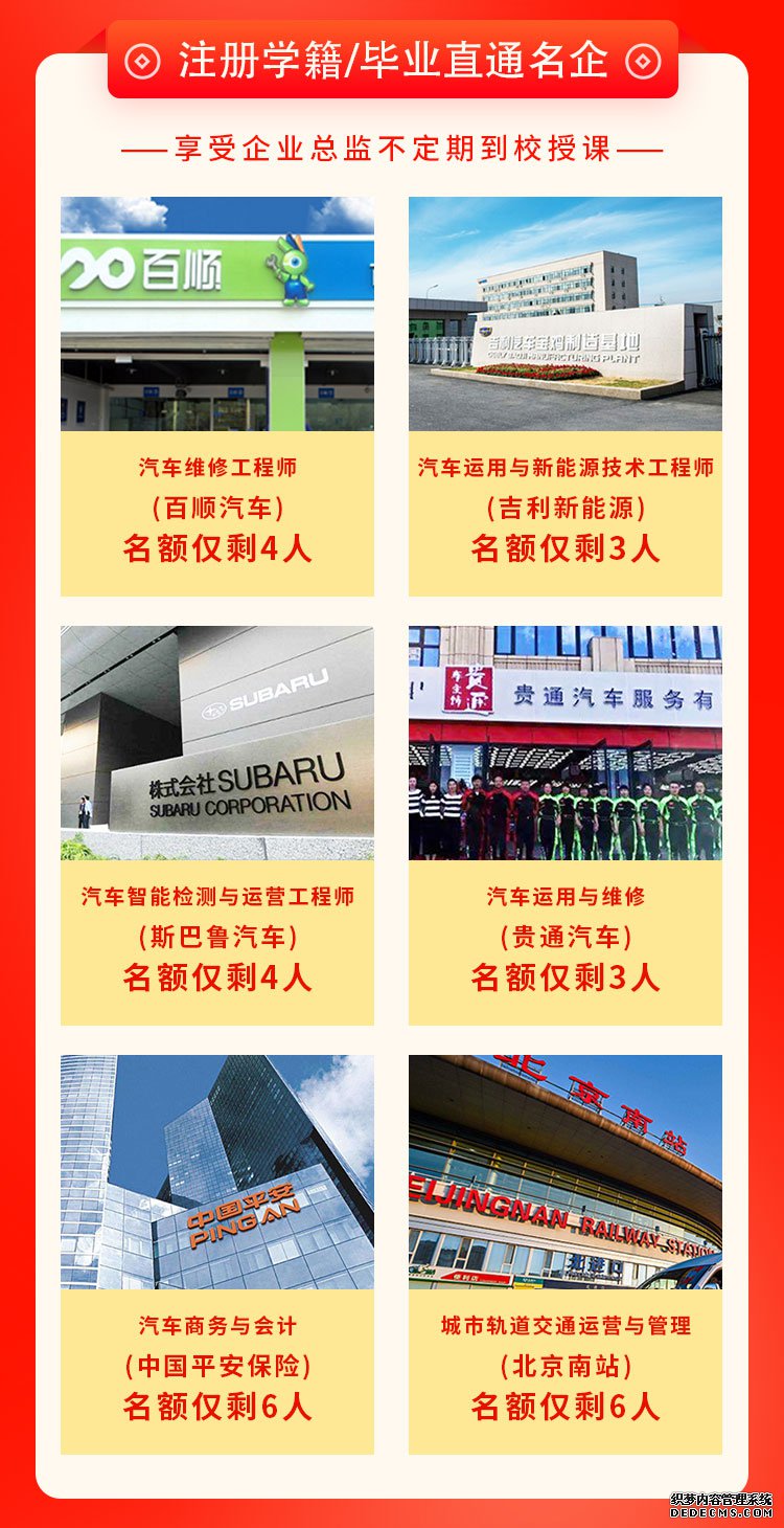 现在报名可预定校企定向班,定向培养,入学即签,毕业直升企业,就业不担心。